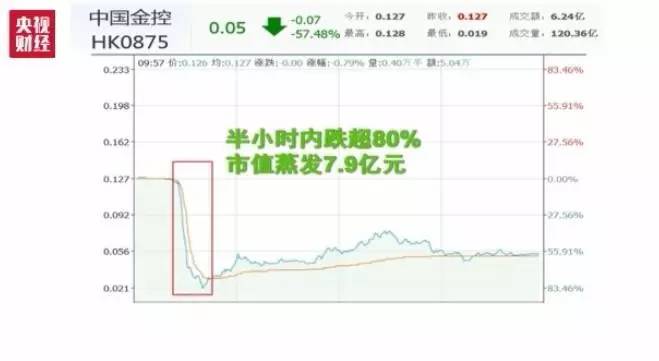 继辉山乳业之后,港股今日又有一只股票断崖式暴跌!中国金控上午10时左右开始急速下跌,半小时内跌超80%。
