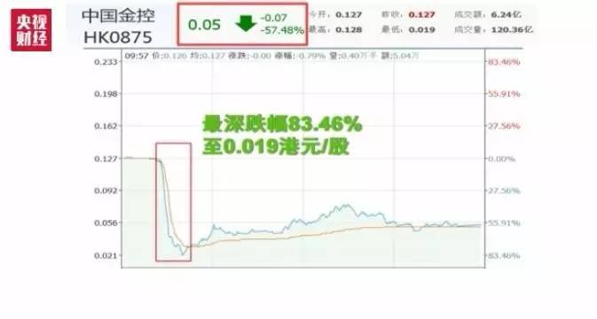 其实像中国金控暴跌的情况并非个例,2016年1月28日,恒发洋参以每股0.39港元开盘,开盘后走势还算正常,不过10:00起风云突变,恒发洋参股价开始塌方式下滑,10:36股价就跌至0.034港元。恒发洋参紧急宣布公司股票停止交易。