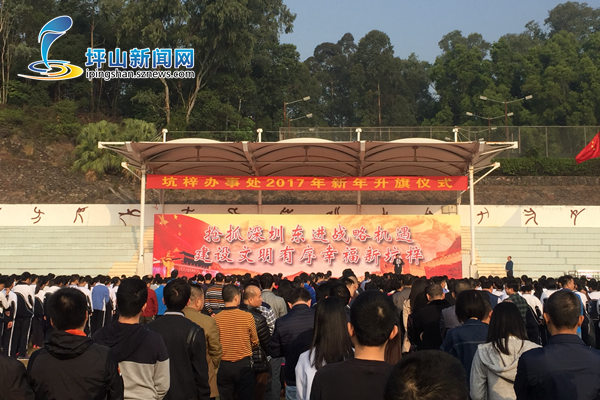 深圳新闻网坪山讯(记者 杨涛 通讯员 高小华)1月3日早上8:45,迎来2017年第一个工作日,坑梓办事处机关事业单位全体干部职工在光祖中学运动场与光祖中学全体学生一起参加了新年升国旗仪式。