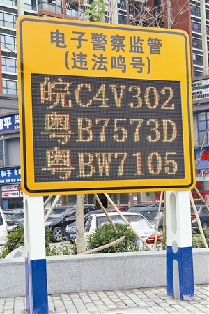 首次启用的“声呐抓拍”设备位于明珠大道泊郡雅苑路段,通过利用基于声呐阵列检测的声源定位、视频检测等技术,可同时对三个车道内前后50米范围内的机动车违法鸣笛行为进行实时采集。一旦有违法鸣笛车辆被抓拍,不出两秒,其车牌号便会在电子大屏幕上显示,实现了对特定区域鸣笛车辆的实时探测、高精度定位、自动查处。