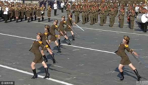当地时间2015年10月10日,朝鲜举行大阅兵,庆祝劳动党成立70周年。女兵惊艳亮相。