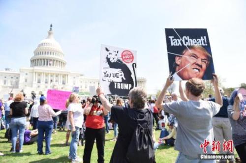 综合报道,4月15日的美国常年报税期限,当天,美国各大城市爆发要求总统特朗普公开报税情况的示威活动。