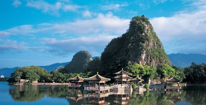 星湖风景名胜区包括七星岩和鼎湖山两部分,共有景点100多个。游人评价很高,认为兼有杭州西湖和广西桂林胜景。
