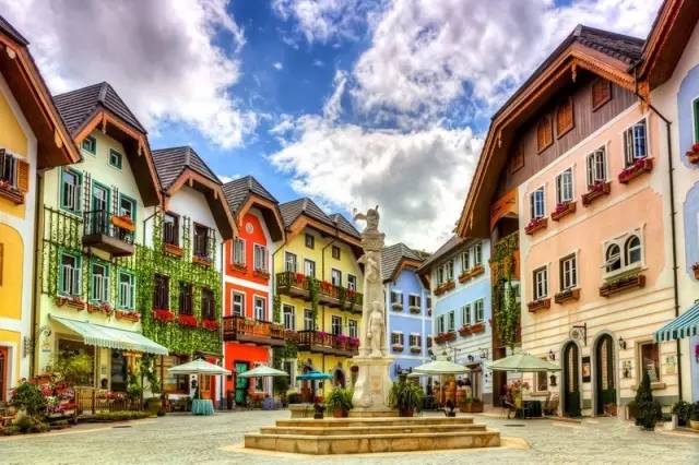 惠州哈斯塔特村以奥地利哈尔施塔特小镇为建筑蓝本,结合本地特点,将浓郁的奥地利建筑风格和欧陆人文风情完美融入当地得天独厚的山水资源之中,不出国门仿若置身奥地利童话当中。