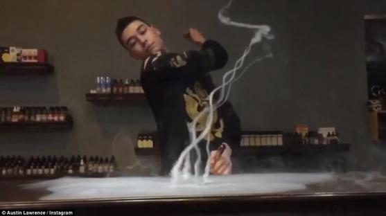 Austin在3年前戒了烟,开始使用电子烟,并玩出各种各样的造型,现在他发布在网上的视频点击量已经超过140万。他还访问了说唱歌手Drake,并且在Drake的豪宅中,教了他如何吹烟圈。