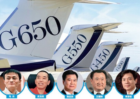大中华区Top 10企业家拥有湾流G550的是王健林、马云、李嘉诚、李兆基、郑家纯。