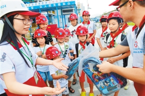 中建三局深圳公司举办关爱外来劳务工子女活动。图为给孩子送去书包和文具。
