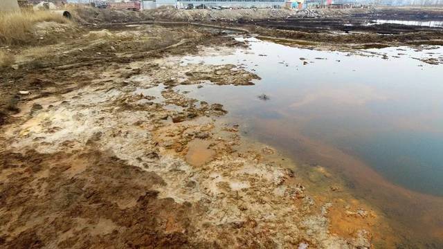 图为位置:河北省廊坊市大城县南赵扶镇;面积:约30000平方米;状态:废水呈锈红色、酸性,由于存放时间长,已大量渗出。