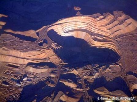 4、美国犹他州宾汉姆峡谷铜矿坑 宾汉姆峡谷铜矿位于犹他州奥克尔(Oquirrh)山脉,这处矿坑深1200米,宽4000米。这是当前世界上最大的人为挖掘矿坑。