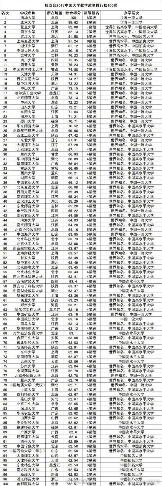 4月25日,艾瑞深中国校友会网发布2017中国大学教学质量排行榜、毕业生质量排行榜、市长校友排行榜等榜单。