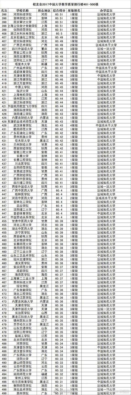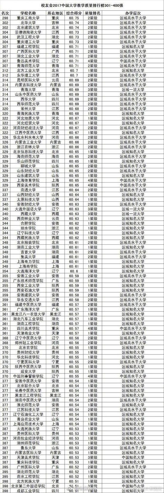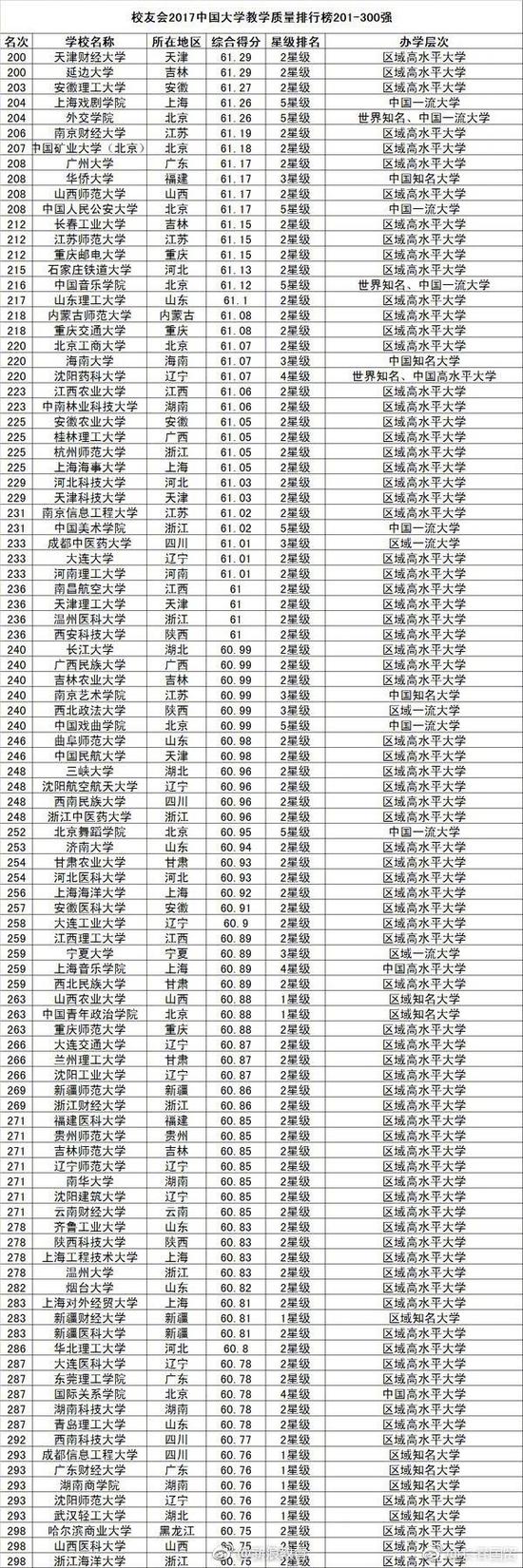 4月25日,艾瑞深中国校友会网发布2017中国大学教学质量排行榜、毕业生质量排行榜、市长校友排行榜等榜单。