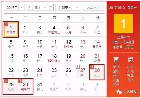 5月30日(星期二,农历端午节当日)为国家法定节假日;