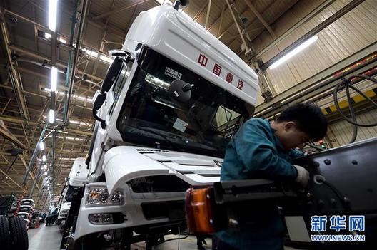 这是在中国重汽集团济南卡车公司,整车装配生产线正在忙碌作业(2016年11月30日摄)。始建于1956年的中国重汽集团抢抓“一带一路”发展机遇,加速海外市场布局,目前在70多个国家发展了160多家经销商,建立了590个售后服务网点和8个KD组装工厂。