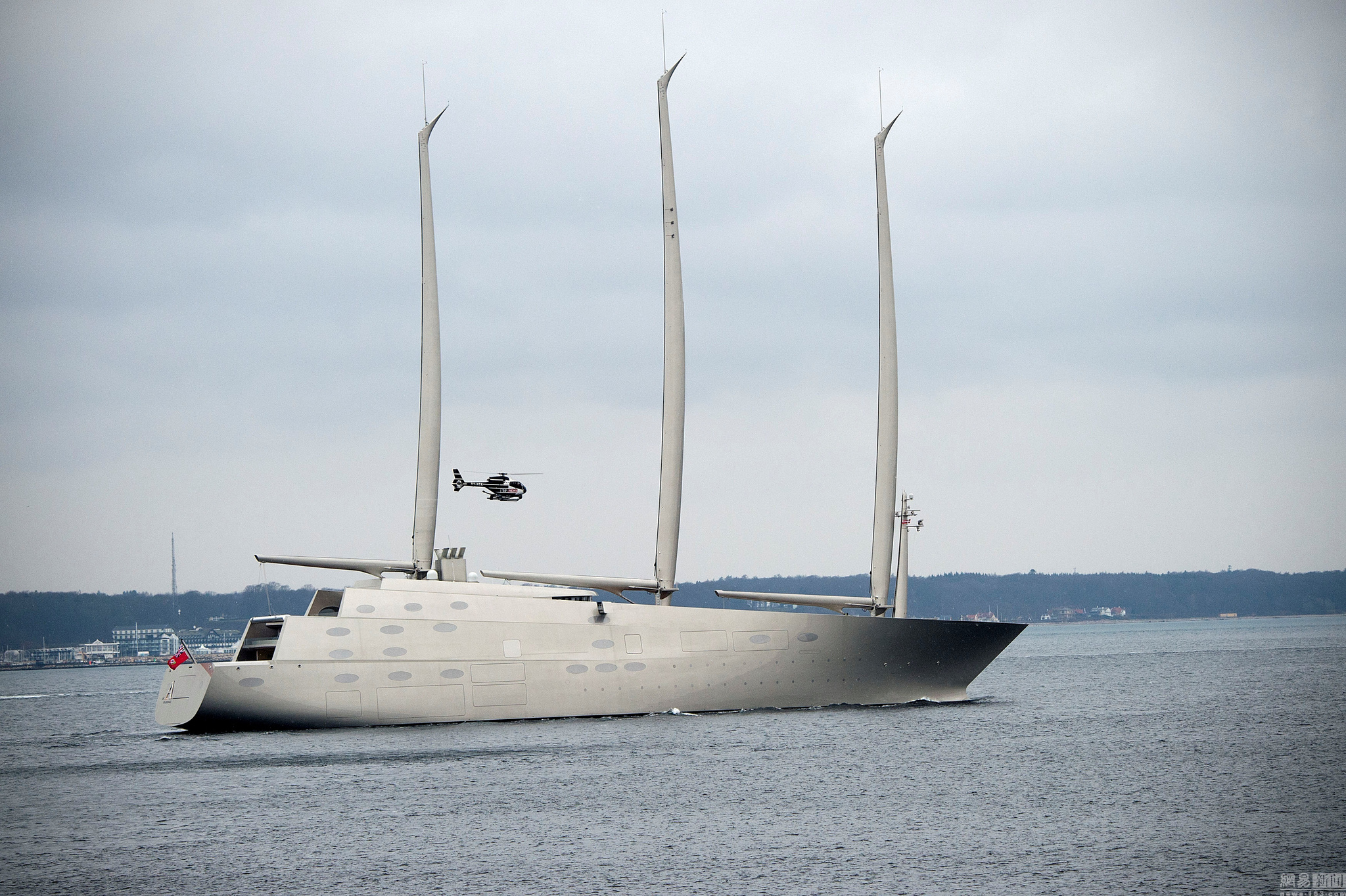 丹麦Elsinore,世界上最大的超级游艇Sailing Yacht A经过丹麦,将前往挪威。这艘巨艇属于俄罗斯亿万富翁 Andrey Igorevich Melnichenko。Sailing Yacht A 长约 143 米,高约 91 米,以游艇的角度来说绝对是当之无愧的巨物了。除了尺寸,它在设计上也有许多看点。Sailing Yacht A 的桅杆以碳纤维所制,因此成为了世界上最高且强度最大的复合式独立结构之一。新游艇采用柴电发动机驱动,最高速度可达 20 节,巡航速度也能达到 15.6 节。它总共分为八层,可以容纳 20 位客人和 54 位船员,甚至还有 3 个游泳池以及一个直升机停机坪。图/视觉中国