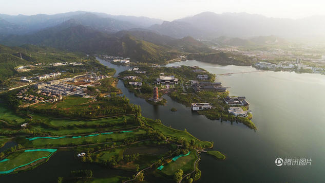 这是无人机航拍的雁栖湖(5月6日摄)。新华社记者 李鑫 摄