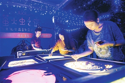 沙画创作。