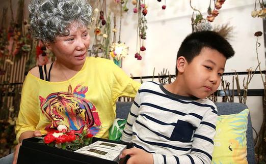 在进行变老化妆前,一位妈妈化妆变老后,孩子不敢看。