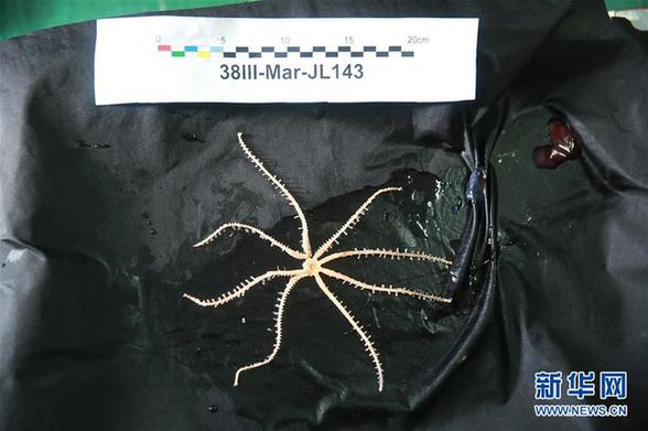 这是5月23日拍摄的“蛟龙”号在马里亚纳海沟带回的生物样品海星。