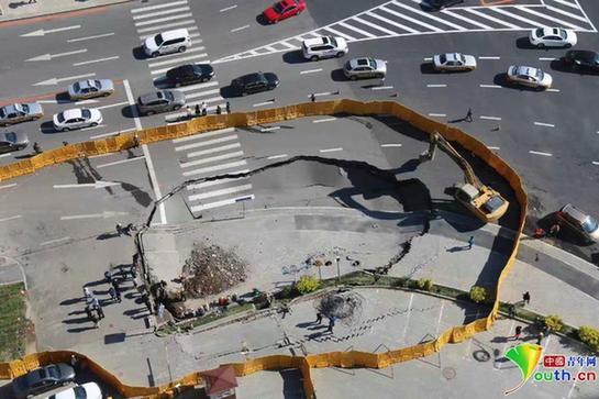 5月26日,有网友发微博称,吉林省长春市卫星路与人民大街交汇卫星广场路面塌陷。5月26日上午,今日头条认证为“吉林省公安厅交通警察总队”的公众号发布消息,称卫星广场一路段路面塌陷,具体原因还在调查中。据记者了解,长春市市政设施维护管理中心道路部、长春市城乡建设委员会相关领导、工作人员已赶赴事故现场,暂未接到人员伤亡或车辆损伤的报告。记者 李永鹏 实习记者 蒋艳慧 图片来源:中国青年网