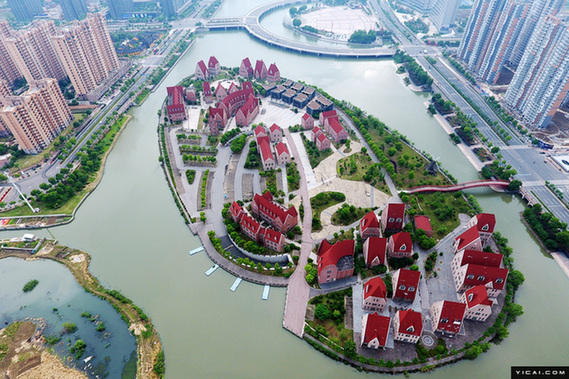 2017年5月24日,江苏苏州,航拍活力岛。由中央万人广场和东、西两个小岛组成的活力岛,总计超过400亩的岛上,建满了各式风情的特色建筑。