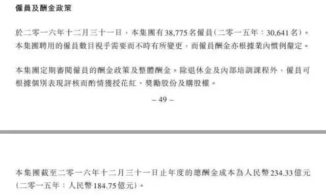 腾讯的2016年年报显示,截至去年年底,员工有38775名,2016年的总薪酬是人民币234.33亿元,基金君简单粗暴的平均一下,嗯 人均60.4万元年薪。
