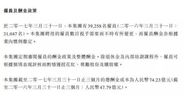 而腾讯最新的季报显示,截至2017年一季度,腾讯员工有39258名,这三个月腾讯付的总薪酬是74.23亿人民币,算一下,平均每一个员工一个月的薪水是......6.3万元。大家可以自己乘以12个月算一下哈。