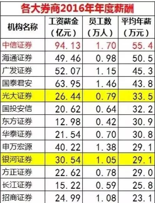 银行、券商和保险三大金融行业中,券商业平均年薪水平最高,在2015年牛市环境下全年还有券商的平均年薪能够达到80万左右,例如中信证券2015年平均年薪78.5万元。