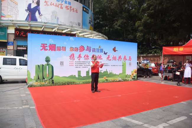 区疾病预防控制中心主任吴能简主持宣传活动、区卫生和计划生育局副局长李伯湛同志宣布坪山区“世界无烟日”系列宣传活动正式启动。希望通过戒烟咨询、各类场所控烟督查、自行车控烟宣传巡游等现场活动的开展,倡导全社会动员起来,为广大市民与青少年创建无烟环境,正确认识烟草危害,防止二手烟危害健康,倡导健康的生活方式。