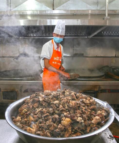 端午节,当地人除插蒲艾,饮雄黄酒,吃大蒜、盐蛋、包子、粽子外,喜用鲜沙参、玉竹、黄芩等炖肉食用。图为药根宴准备工作。
