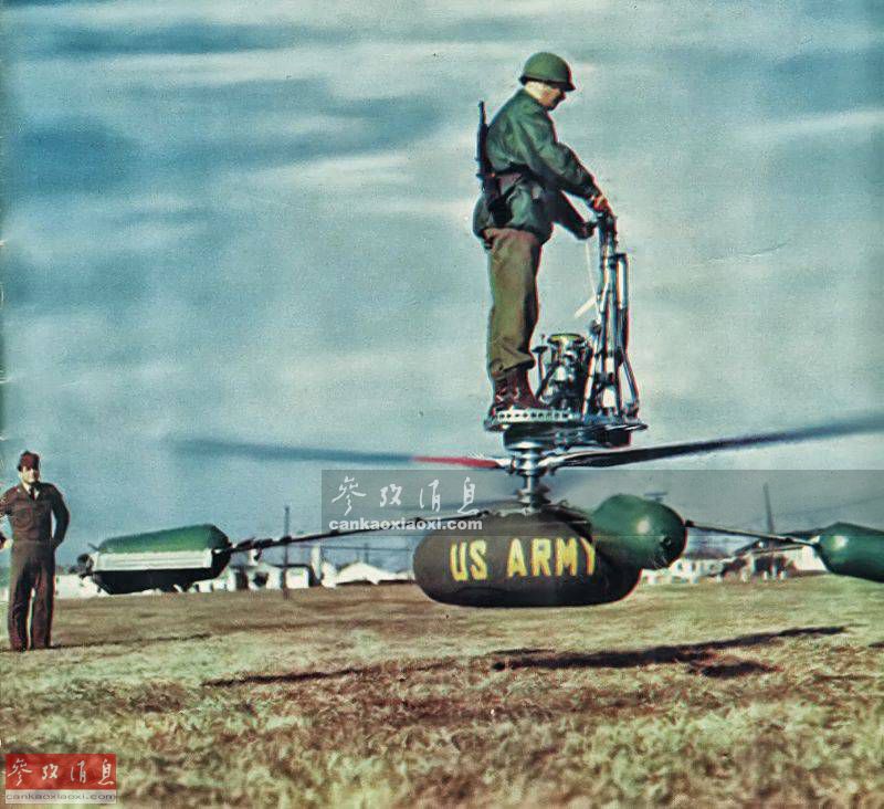 美国陆军实际早在1954年就进行过“飞行步兵”项目研发,图为HZ-1单兵旋翼飞行器,但由于技术过于超前,仅生产了12架之后,该项目最终被取消。