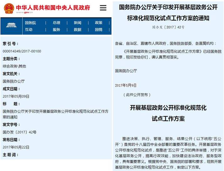 《开展基层政务公开标准化规范化试点工作方案》