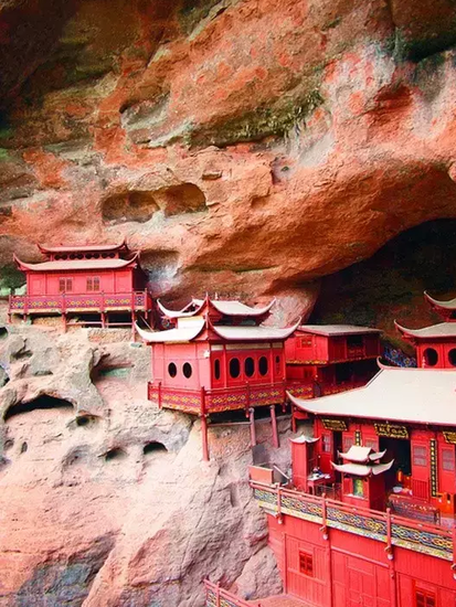 甘露寺恰到好处地镶嵌在岩洞之中,屋顶无需用片瓦。