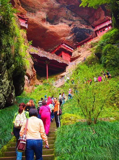 顺着蜿蜒的小道来到甘露寺山脚下,路旁的方竹丛丛簇簇,郁郁葱葱,一种新奇的感觉油然而生。