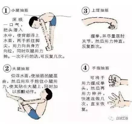 2、若是小腿或脚趾抽筋,先吸一口气仰浮水上,用抽筋肢体对侧的手握住抽筋肢体的脚趾,并用力向身体方向拉,同时用同侧的手掌压在抽筋肢体的膝盖上,帮助抽筋腿伸直。