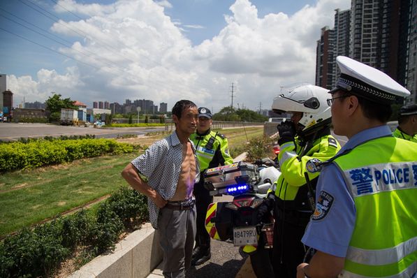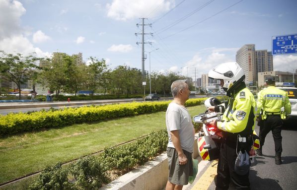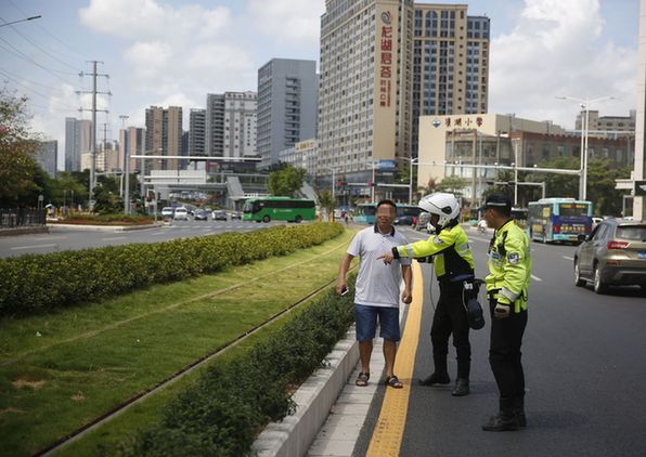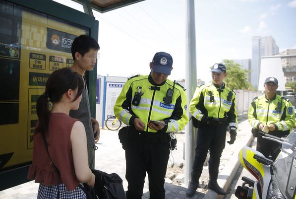交警对穿越电车轨道的行人进行处罚