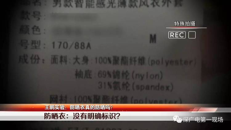 而且,服装市场一些小店里销售的百元以下的所谓防晒衣,很多是三无产品,有些虽然有商标和吊牌,但也没有写明厂家地址、衣服材质等信息,更没有标注防晒、防紫外线的性能。