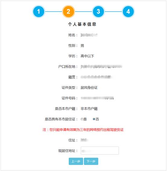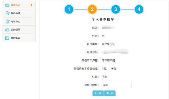 监管平台将自动显示申办人个人信息,申办人核实无误后,点击【下一步】继续办理。
