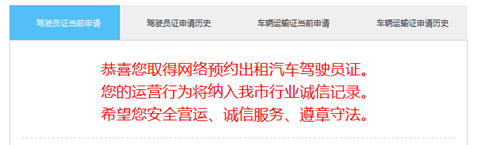 用户完成信息申报后,监管服务平台将信息分别推送至有关部门联合审批。用户可在申请页面查看申请进度,自用户提出申请《网络预约出租汽车驾驶员证》 10个工作日后,可在网上查询许可条件审核结果。