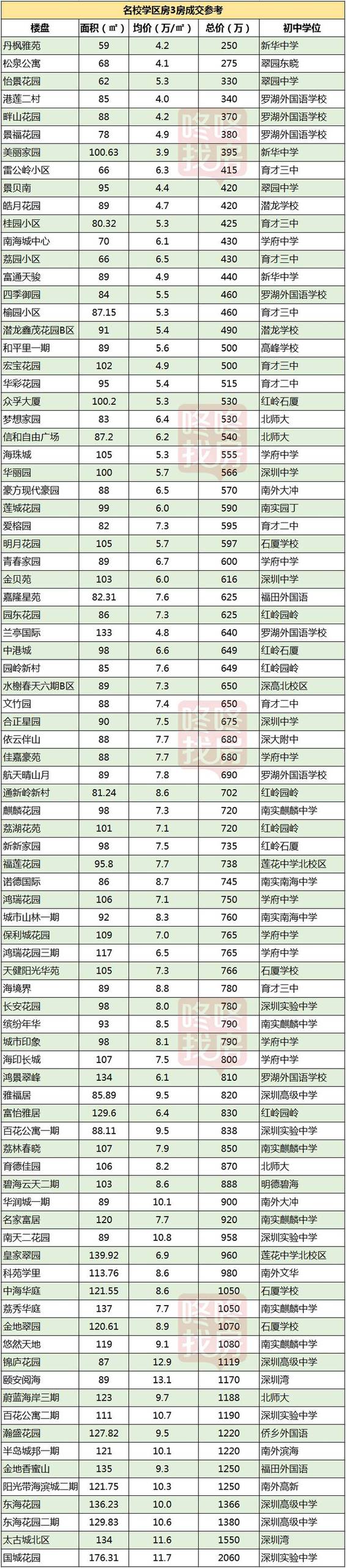 对比前两月数据,因为新加入了新华中学和罗湖外国语学校,在均价与套均总价上有略微下降,带套均面积仍基本保持一致,但是在与地产经纪人沟通市场情况得知,最近随着高考的进行与结束,咨询学区房的热度相比前两月有明显回升,根据以往经验,每年在高考与中考结束之后,学区房的成交都会迎来一阵小高峰,在此学霸先锋提醒各位置业者,如确有购房改善需求,请提前入场选房。
