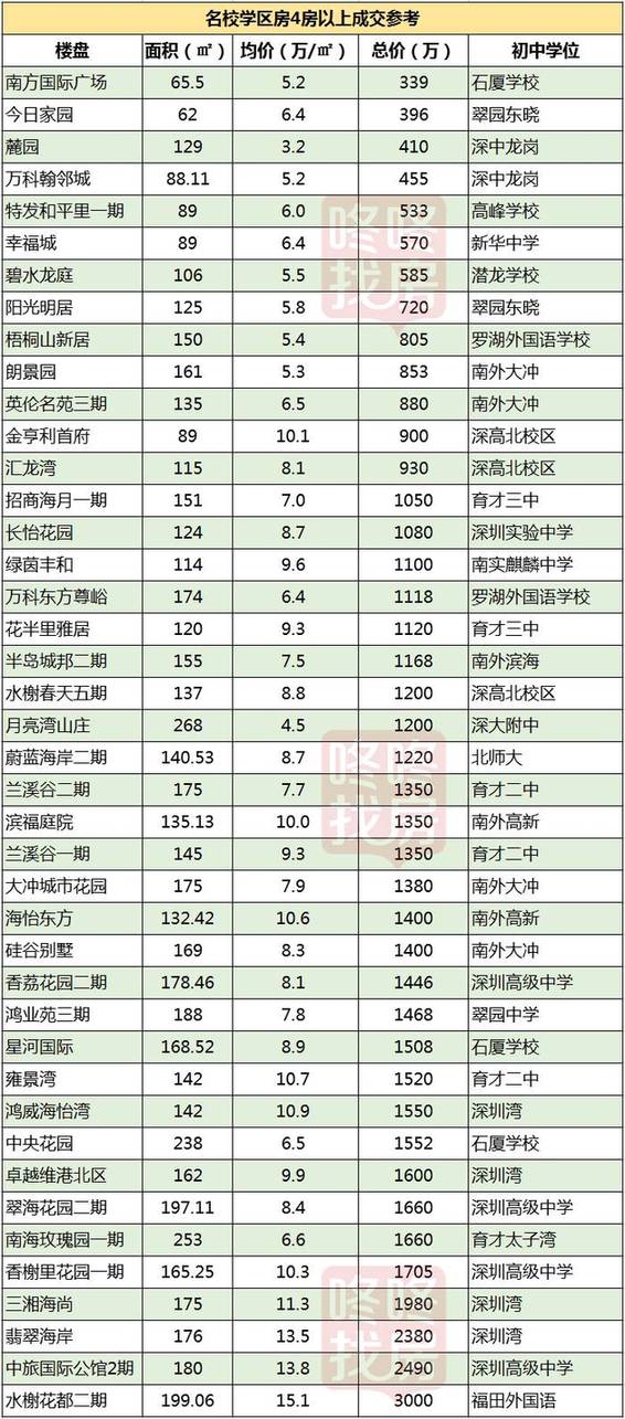 以上统计到的学校共计35所,部分学校成名已久,教学成绩深受置业者信任,同时此次统计也包含了几所近年新开办的高起点新校和归入名校集团的新校区,例如 明德实验学校、深圳湾学校、育才太子湾学校等,虽然尚未出成绩,但是已经引起了不少置业者的关注。