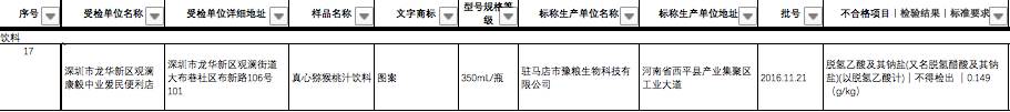 龙华区观澜康毅中业爱民便利店的真心猕猴桃汁饮料,脱氢乙酸及其钠盐不合格。