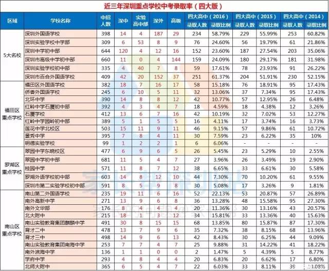 深圳中考录取率排名分析,你家孩子排名多少可以上四大?