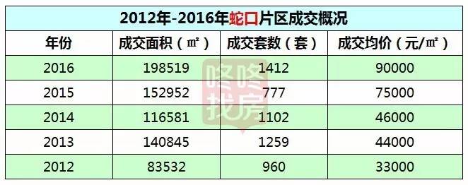 2012年均价33000元/平方米,2015、2016在稀缺高端物业半岛城邦、海上世界双玺等项目的带动下,片区价值进一步凸显,2016年均价90000元/平方米,五年涨幅达57000元/平方米。