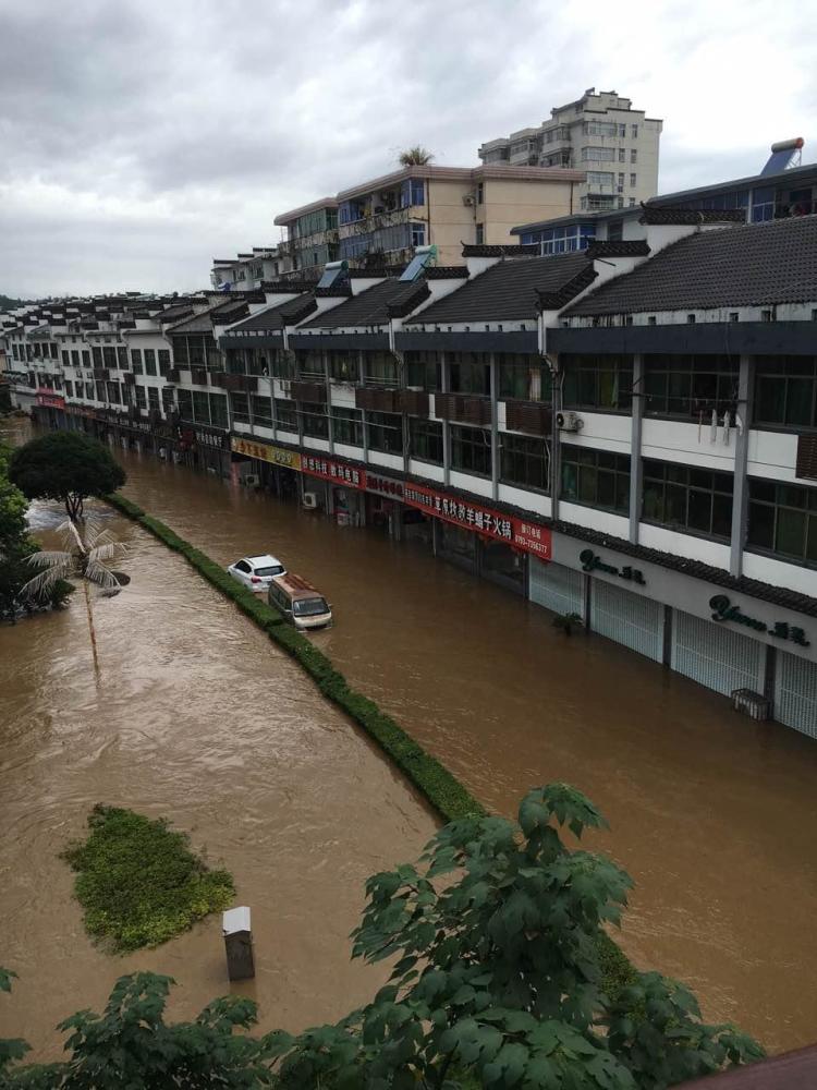 婺源百年古镇遭遇特大洪水 村民街头捉鱼