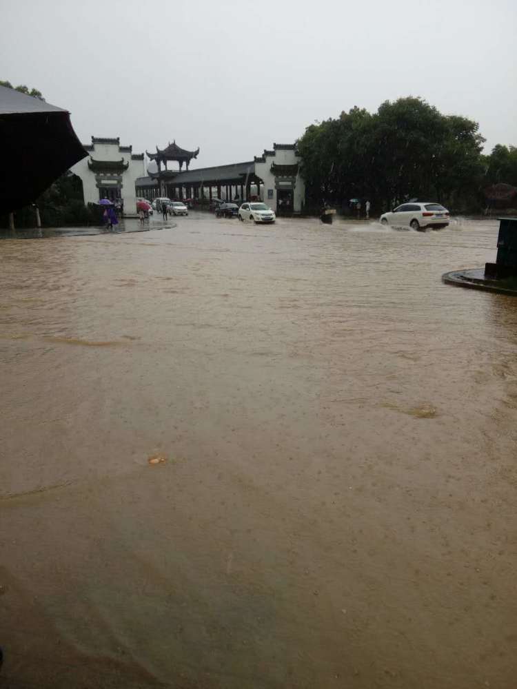 图为婺源景观桥街道被淹。