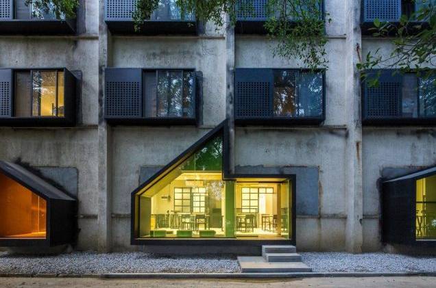 艺象iDTOWN国际艺术区前身为1989年建成的深圳鸿华印染厂,由19栋旧工业厂房构成。大堂的设计保留了上世纪八十年代风,未经修饰的天花散发的旧工业气息,让人不禁怀想曾经叱咤风云的鸿华印染厂的景象。