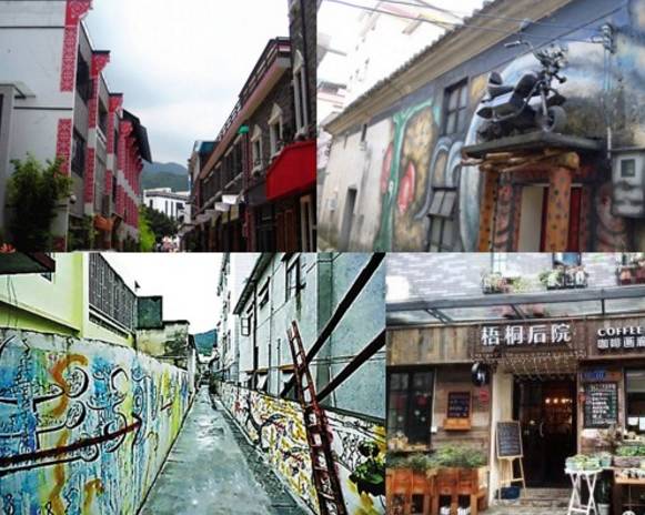在这条由百年老街改造而成的艺术街上,遍布街巷的涂鸦,各具特色的门面,吸引了不少游客好奇的眼光。这里聚集了很多艺术家,画画的、玩摇滚的,写诗的。等哪天不想工作想创作了不妨来这里住几天哈哈~