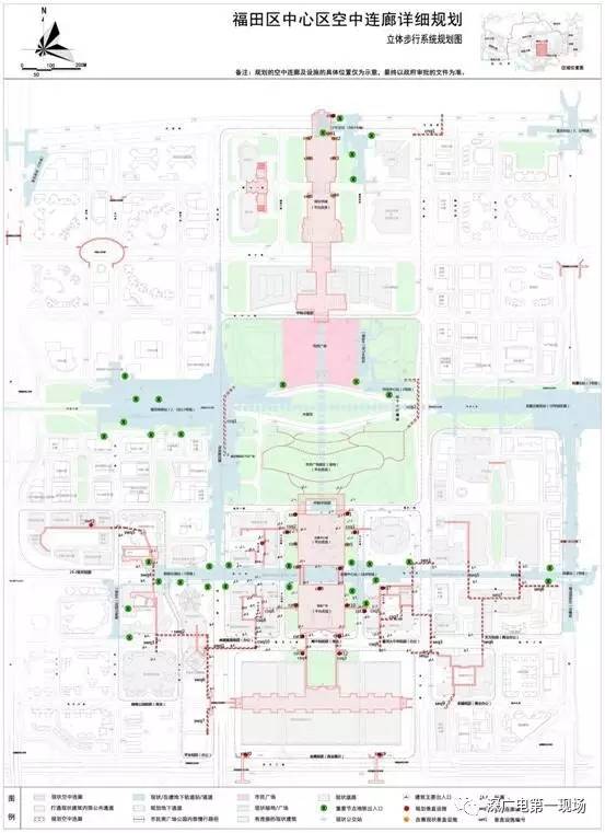 根据深圳市规土委福田管理局公示的《福田区中心区空中连廊详细规划》(草案),在红荔路、彩田路、滨河大道和新洲路所围合的4平方公里区域,拟建福田中心区空中连廊系统及与之相关的立体步行系统。具体规划空中连廊23座,现状升级连廊4座,打通建筑内部通道2处,新增垂直设施19处,改造现状设施10处,改造现状空中平台4处。