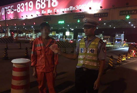深圳一工程车收费站被查 司机企图甩400元贿赂交警