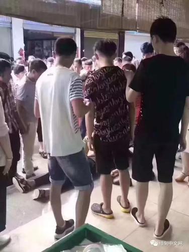 根据德宏广播电视台的报道,这名女游客来自江西,她从手上取玉镯的时候,“左边夹着包,右边夹着雨伞,取下来的时候,手镯啪啦就掉到地上了。”图为周围人将女子抬到室外进行救治。